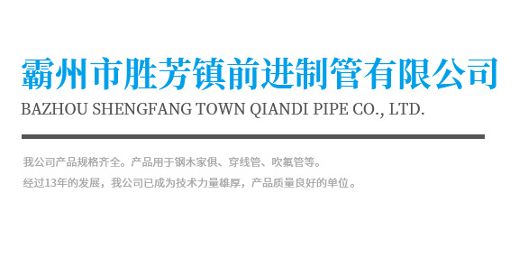 Bazhou Shengfang Town Qiandi Pipe Co., Ltd. 霸州市勝芳鎮(zhèn)前進(jìn)制管有限公司位于河北霸州市勝芳鎮(zhèn)開發(fā)區(qū),地處京、津、保三大城市中心地帶。北距北京120公里,東距天津45公里,西有京九鐵路,北有津保高速公路貫通。規(guī)格齊全,檢測(cè)完備